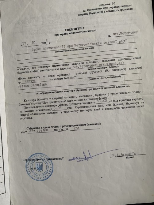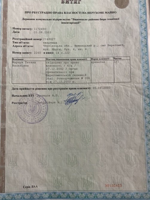 Продам 1-но кімнатну квартиру в містечку Берегомет(Вижницький р-он)