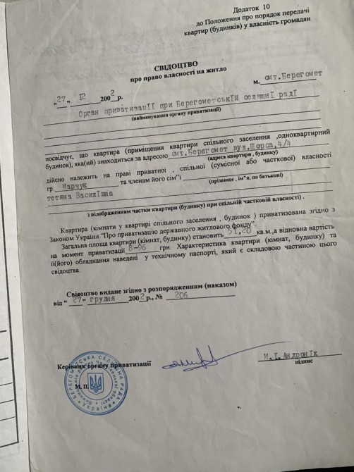 Продам 1-но кімнатну квартиру в містечку Берегомет(Вижницький р-он). Центр міста вул. Щорса 4 кв. 4. Загальна площа 52 кв.м. Є каналізація, виведені труби під воду, потребує внутрішніх робіт. Кімната велика з високими стелями, можливе використання під підприємницьку діяльність (магазин, пекарня, склад т.д) Всі деталі по телефону, ціна договірна.