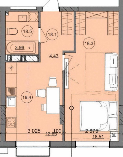 • Площа кухні 18.4 м2