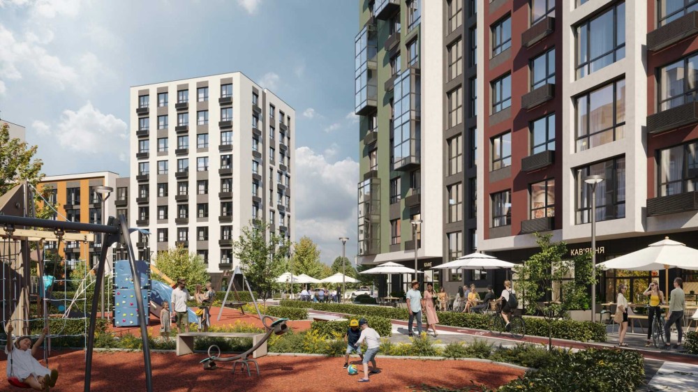 На территории комплекса будет построен бассейн для жильцов, коммерческие помещения, детский сад, школа, медпункт, школа, детский сад, спортивные и игровые площадки, подземный и гостевой паркинг.