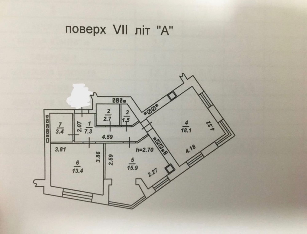 Квартира знаходиться на 7 поверсі 10-поверхового будинку.