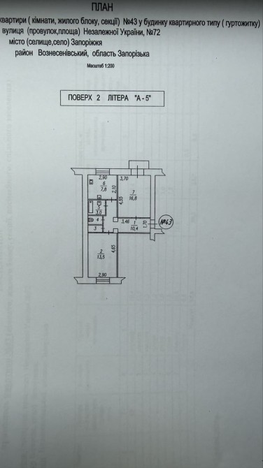 Планировка квартиры: две раздельные комнаты (16,8 кв.м. и 13,5 кв.м.), раздельный сан узел, просторная кухня, кладовая, большой коридор.