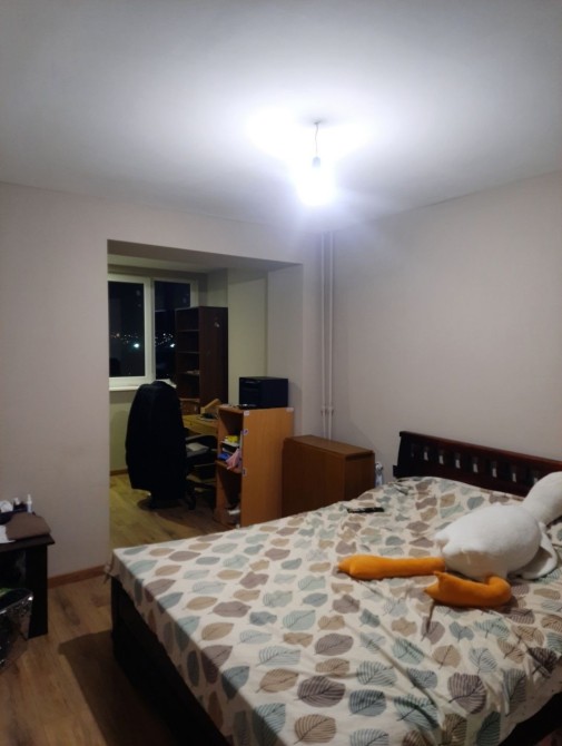 Кухня збільшена за рахунок балкону, лоджия. Залишаються частково меблі. Рядом зупинка транспорту, ринок, парк.