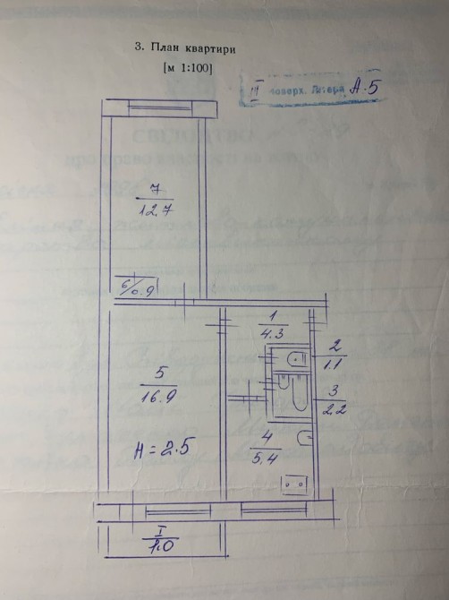 • Площа кухні 5.4 м2