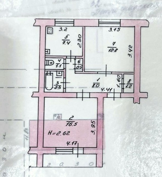 • Площа кухні 7.4 м2
