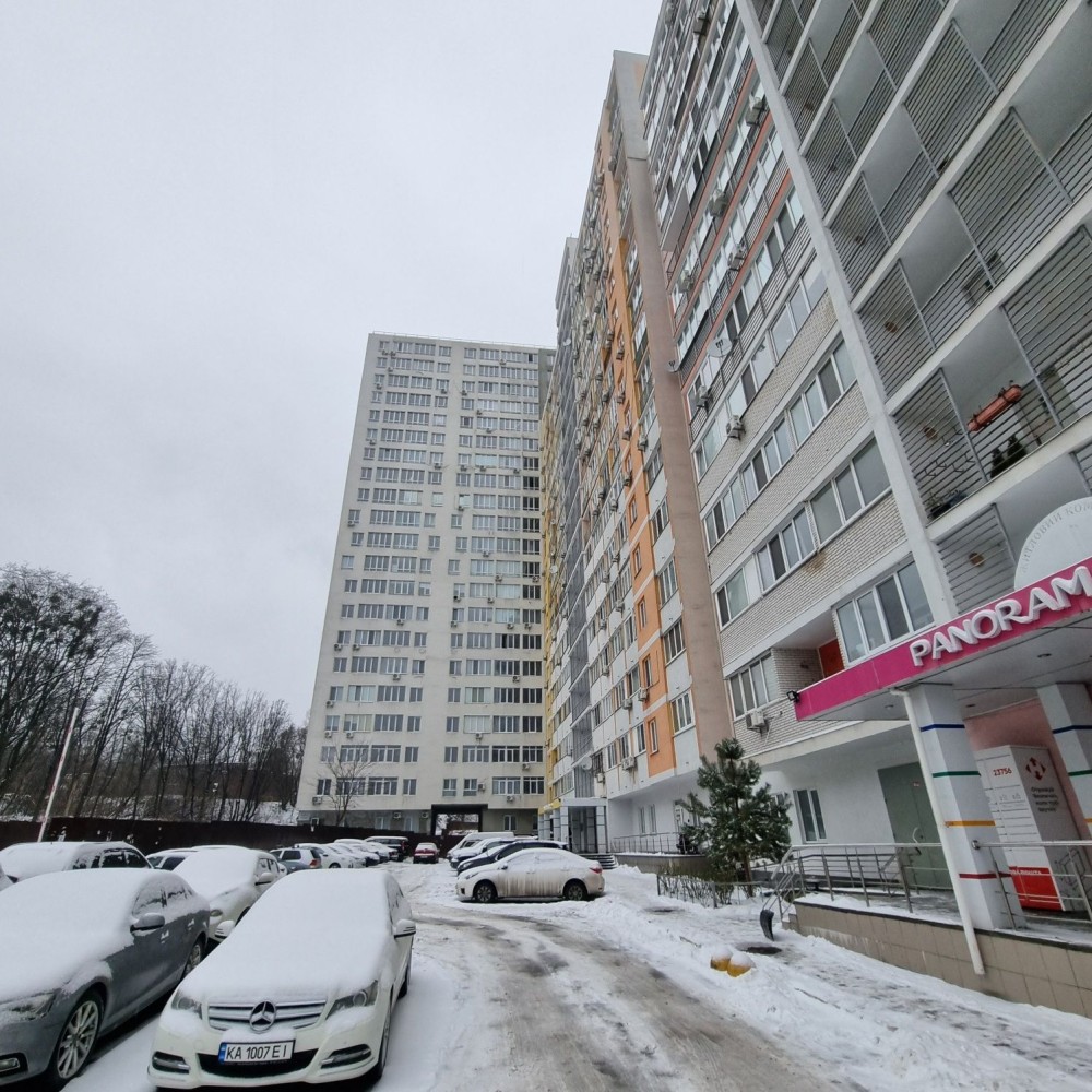 12й поверх 21ти поверхівки, монолітно-каркасна будівля, фасад будинку утеплен пінопластом та оштукатурений.