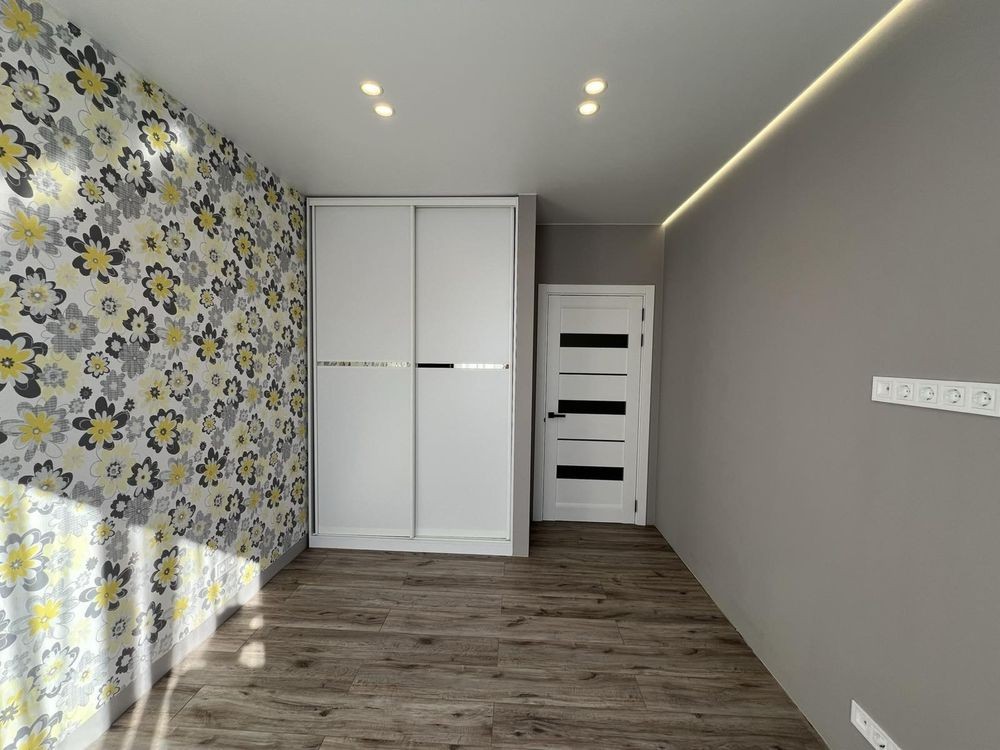 Квартира спланована як повноцінна 2к (окремі 2 спальні), кухня вітальня з диваном, місце під гардероб, санвузол. Площа 48,7 м2, спальні 17,2м2 і 13,3м2 відповідно. По документах однокімнатна.