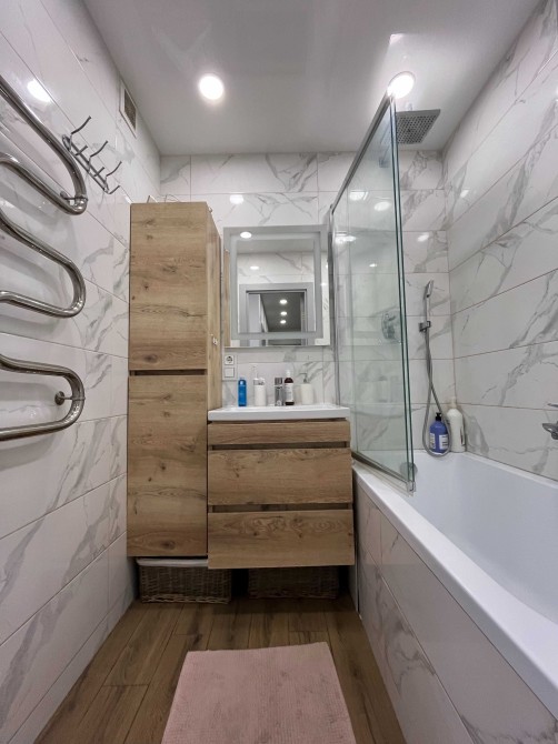 вул. Миколи Закревського 77, 8/10 поверх, 50.3/28.8/7.9 кв.м., + є комора на поверсі, 96- серія будинку, двокімнатна квартира, кімнати роздільні, чудовий стан. Капітальний ремонт 2020 року з якісних матеріалів (робилось як для себе): металопластикові вікна, балкон засклений МПО, обшитий вагонкою, вирівняні стіни, стелі, підлога. Замінені електрика, сантехніка, міжкімнатні двері, радіатори. Підлога в кімнатах - ламінат, в кухні та коридорі - плитка для підлоги. Санвузол роздільний в кахлі. В дитячій кімнаті одна із стін оздоблена декоративним гіпсом з підсвіткою.