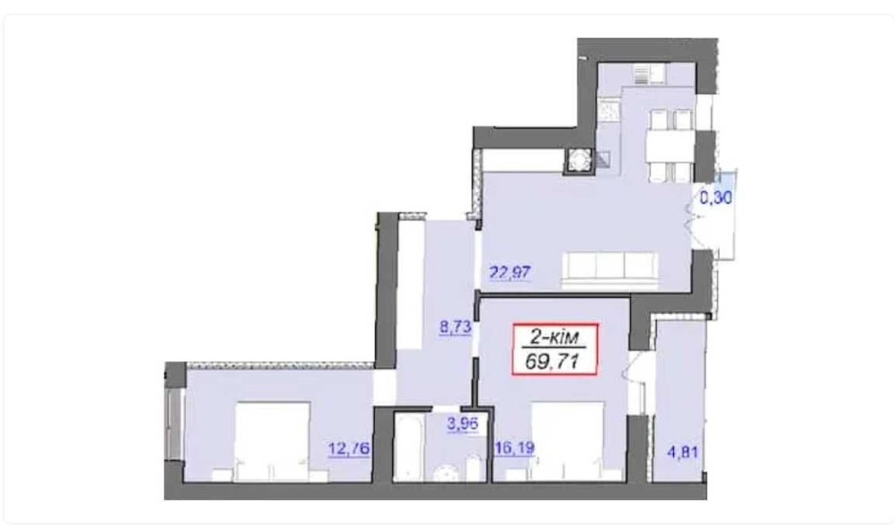 • Загальна площа 69.71 м2