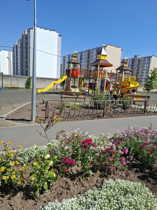 Поруч є все необхідне: АТБ, Дмарт, школа, садочок, зупинка транспорту. Двір доглянутий, у квітах, є дитячий майданчик.