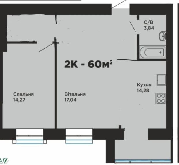 • Загальна площа 60 м2