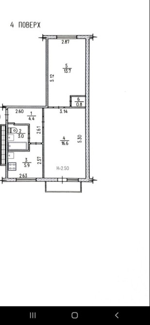 • Площа кухні 6 м2