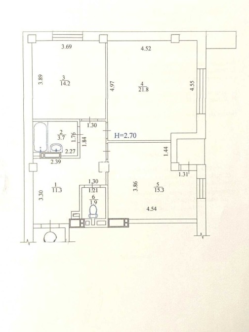 6 этаж 68.2м2 + 1.5м2 балкон
