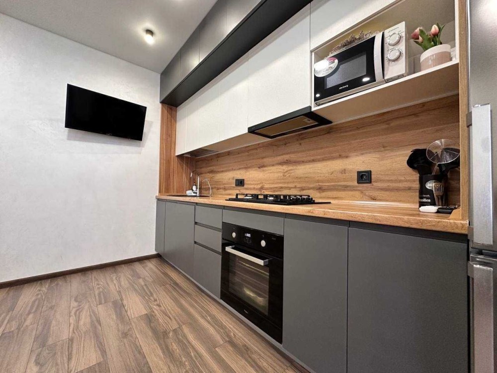 • Уютная гостиная, совмещенная с кухней-студией ( Холодильник, Духовой Шкаф, Микроволновая печь, Посудомойка, Стиральная машина, 2 телевизора, Кондиционер)