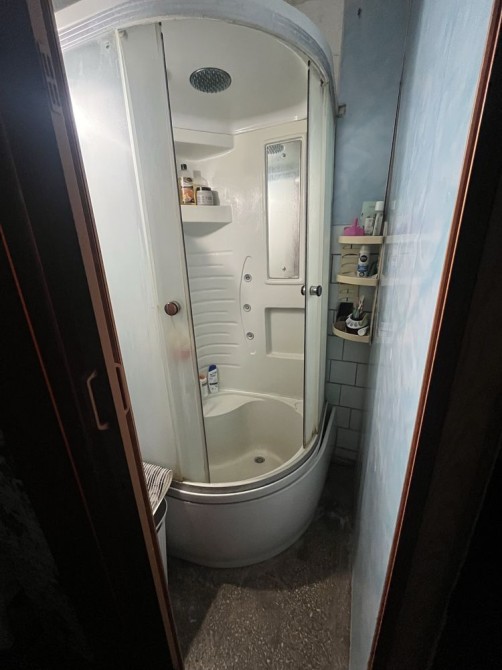 Есть своя душевая кабинка ( в коридоре, рядом со входом в комнату) и там же отдельный с/у на две комнаты.
