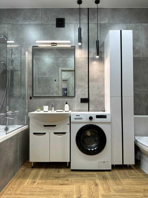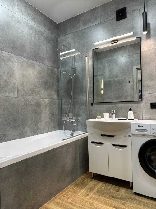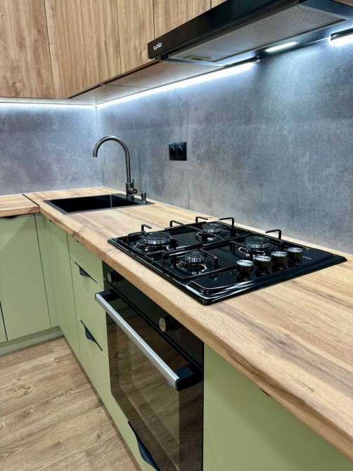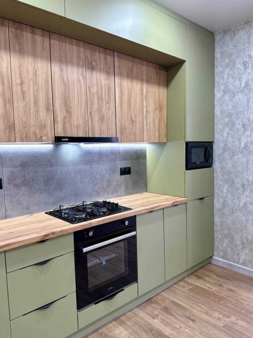 вся вбудована техніка нова: холодильник, посудомийна машина, варильна поверхня, духова шафа, витяжка, мікрохвильова піч, пральна машина
