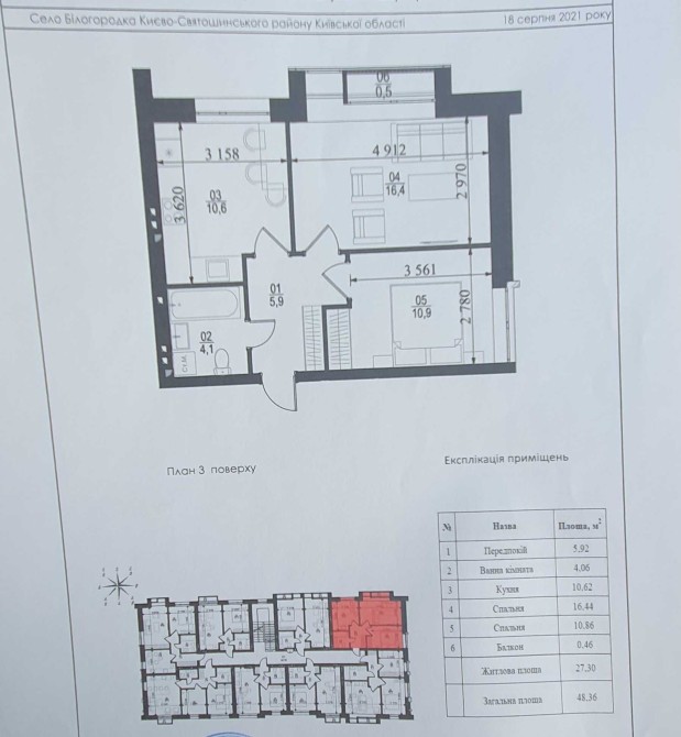 Загальна площа 48, 3 / 27, 3 / 10, 6 м2.