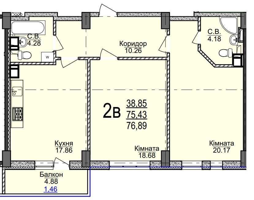 • Загальна площа 76.89 м2