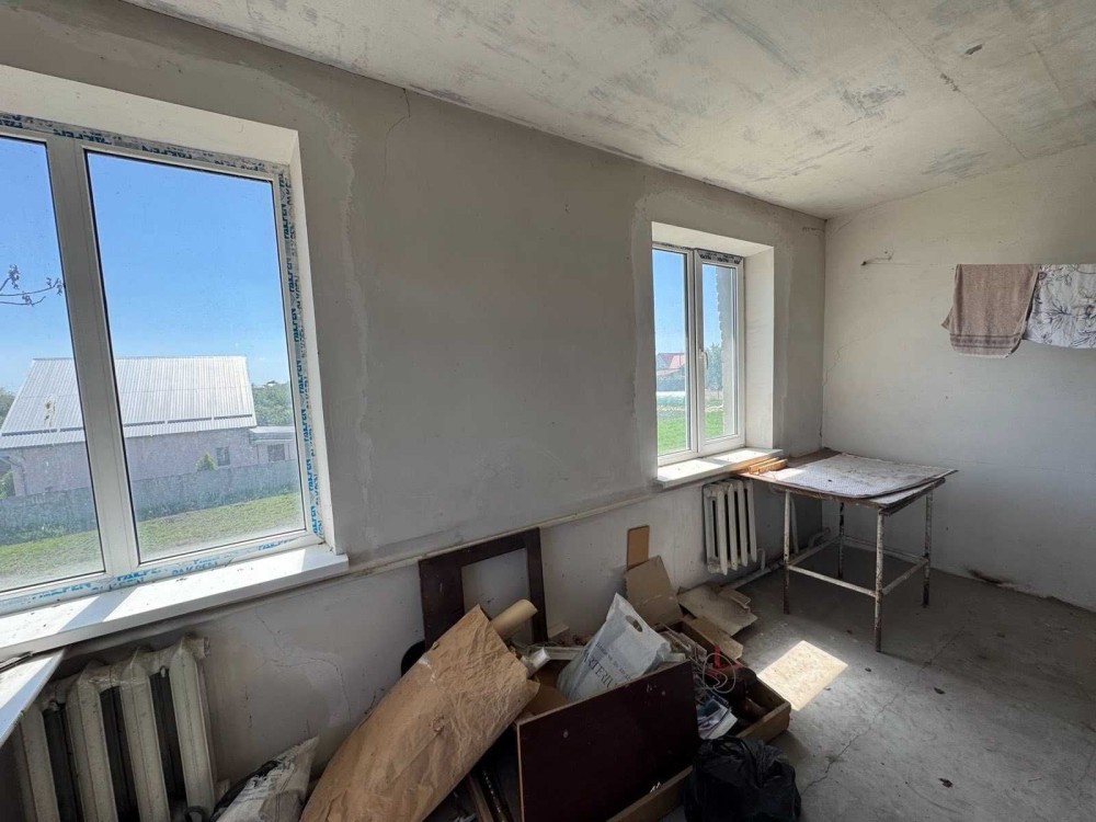 На другому поверсі - зала, дві спальні. В одній із спален зроблен косметичний ремонт, в інших кімнатах стіни відшпакльовані, стяжка підлоги.