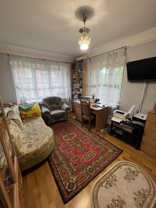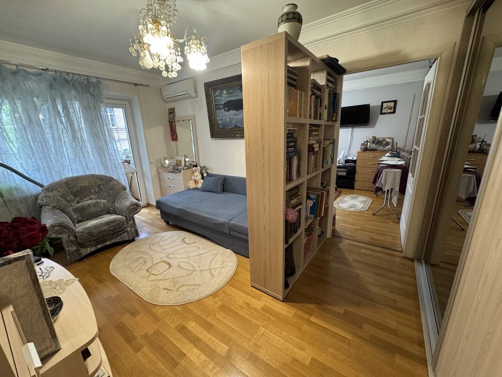 Квартира в прекрасному житловому стані. З вітальні вихід на засклений балкон. Під вікнами зелень, тихе подвірʼя.