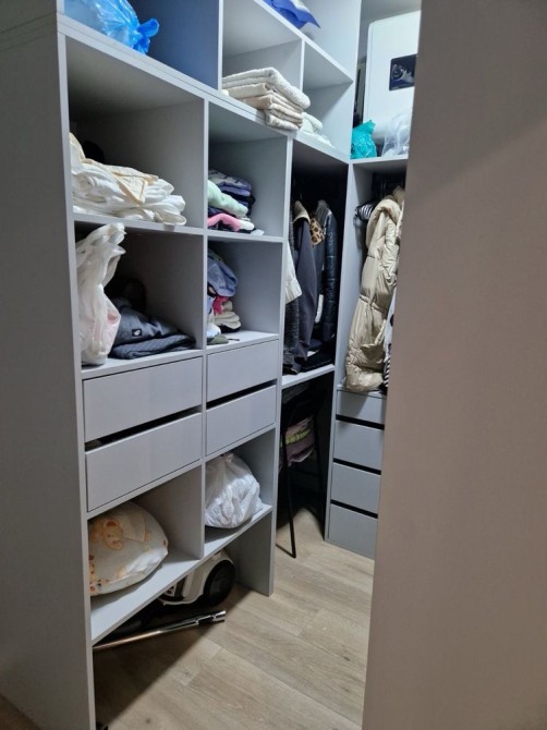 Есть гардеробная, балкон, современный совмещённый санузел.