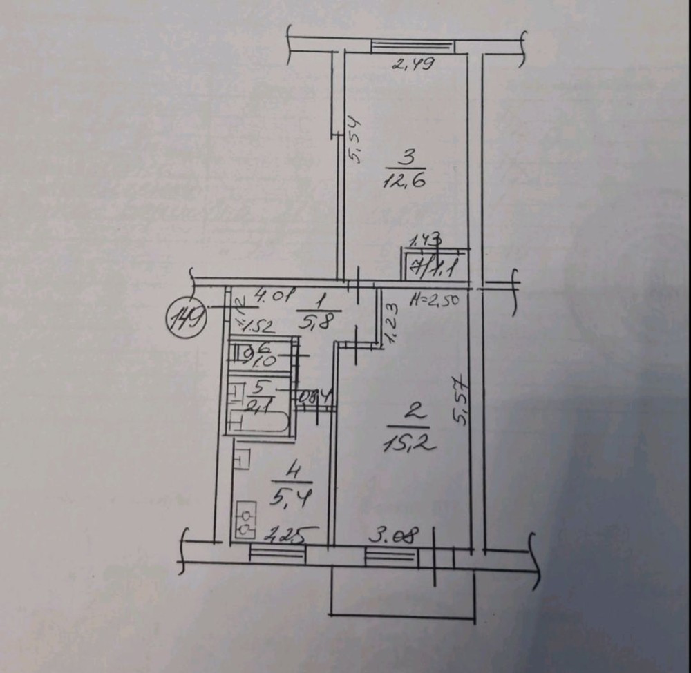 • Площа кухні 5 м2