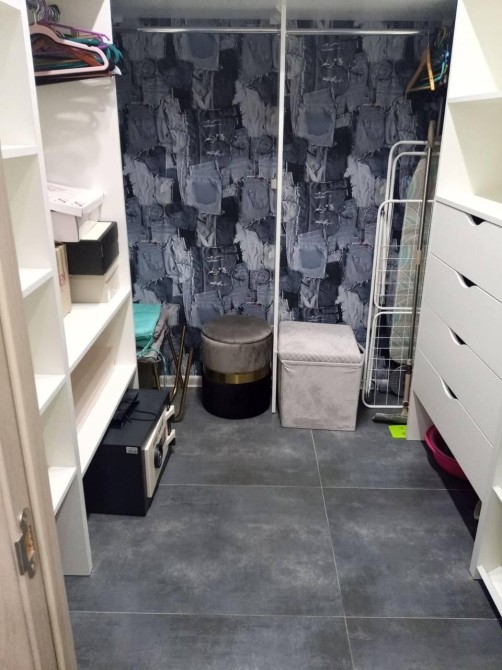 Есть большая гардеробная. Полностью меблирована.Встроенная кухня, диван, двухспальная кровать. Генератор и гидрофор с запасом воды на доме. Лифты работают всегда.