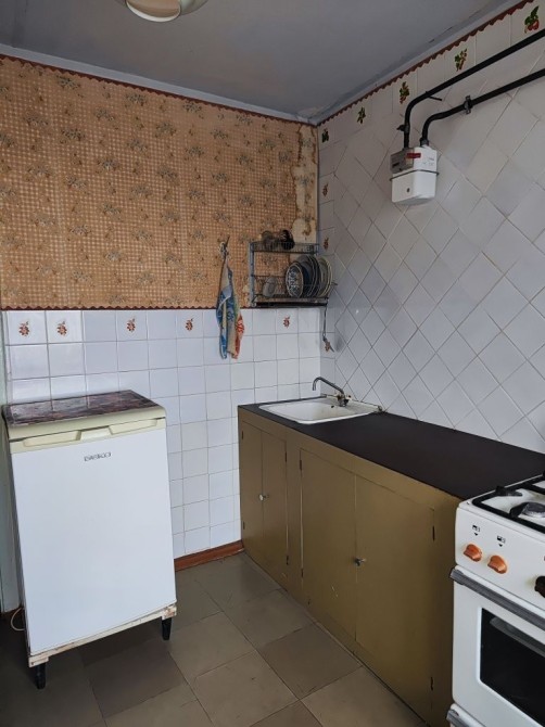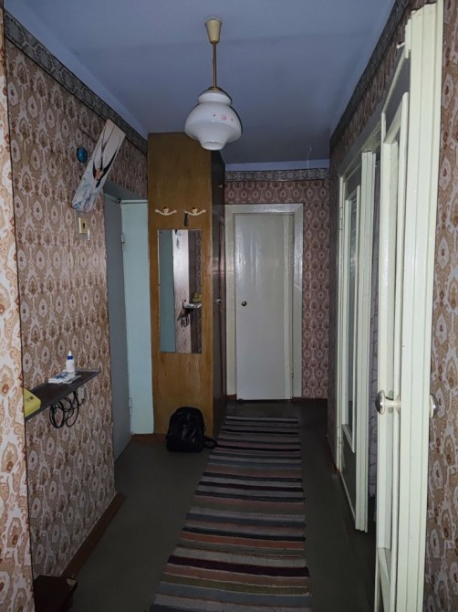 Обои не весят.На полах ленолиум не обдертый.Кафель в кухне и ванной.