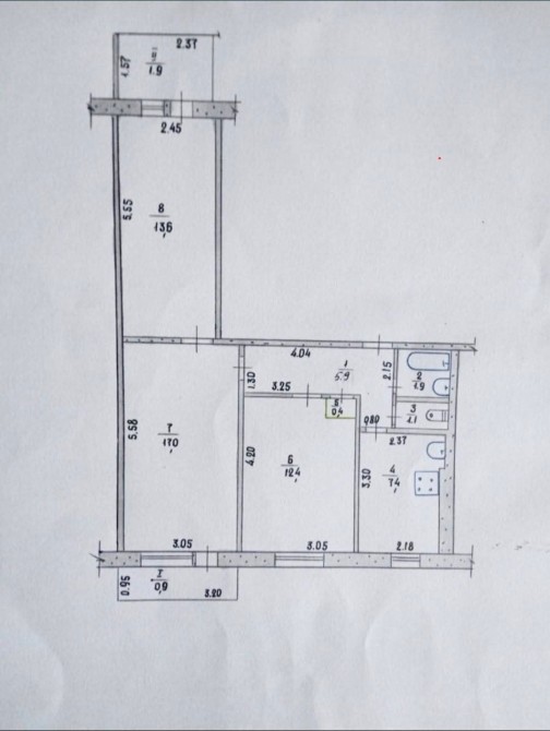Квартира розташована на 8-му поверсі дев'ятиповерхівки.