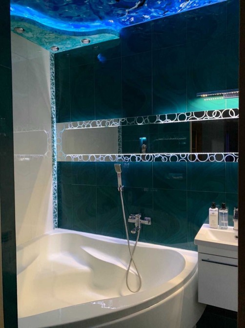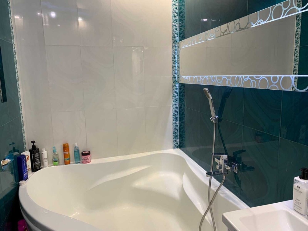 Выполнен качественный евроремонт: установлены металлопластиковые окна, заменены сантехника и электропроводка, смонтированы натяжные потолки. Санузел оборудован угловой ванной, в квартире есть система тёплого пола. Стены оформлены декоративной структурной штукатуркой, напольное покрытие — линолеум и кафель.