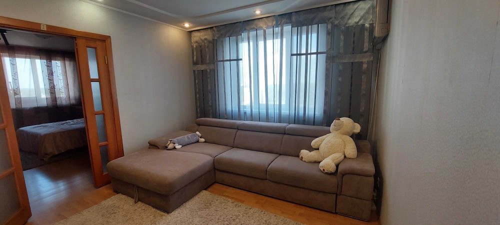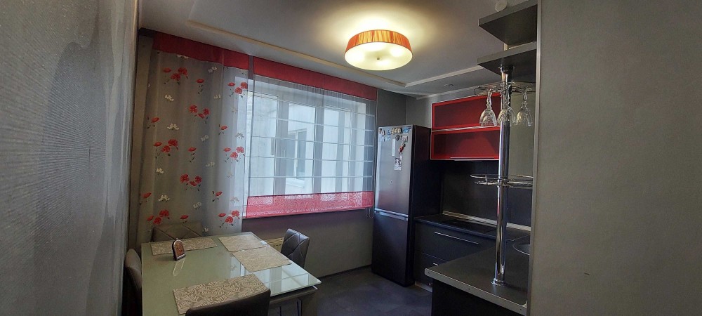 Квартира с современным капитальным ремонтом, поменяно все- трубы, проводка, батареи, МПО, ламинат, натяжной потолок. Установлена качественная техника- бойлер, варочная поверхность, встроенная духовка, стиральная машинка, холодильник, кондиционер. Также установлен фильтр для очистки воды и второй кран для подачи холодной и горячей уже очищенной питьевой воды. Квартира двухсторонняя с прекрасными видами на город, с просторным балконом, есть дополнительный тамбур. Современная мебель в отличном состоянии. В стоимость квартиры входит и мебель и техника - все останется новым владельцам. Можно заходить и сразу жить.