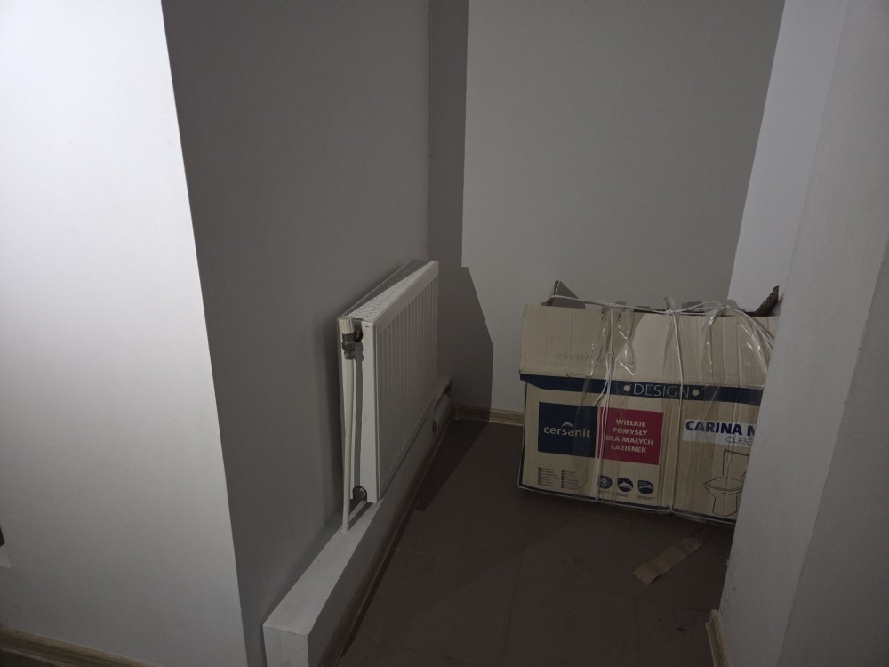 Стіни і стеля білого кольору, підлога - плитка, є кондиціонер, два радіатора але опалення не підключено, можливо нові власники не захочуть підключати через те що офіс теплий і без вікна, що зберігає тепло. В офіс підведена вода.