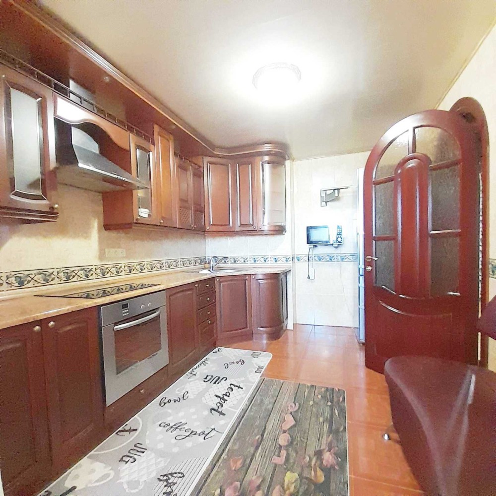 Продається простора 3-кімнатна квартира по вул. Богатирська, 6/1, на 7 пов 21 поверхового будинку. Будинок монолітний 2003 року, утеплений полістеролом. Площа 90/52/12 м кв. Квартира чиста з хорошим ремонтом, світла та тепла. Квадратний хол, ізольовані кімнати, 3-х стороння. Велика кухня укомплектована меблями та побутовою технікою. Санвузол роздільний: якісна сантехніка, іспанська плитка. У кімнатах та коридорі дубовий художній паркет. Вікна, лоджія та балкон – склопакети. 2 шафи-купе, кондиціонери, пральна машина, бойлер (є централізована подача гарячої води). Всі вбудовані меблі компанії Стерх, техніка провідних європейських виробників.