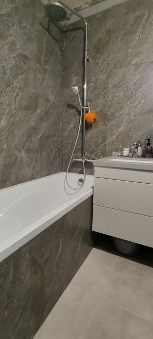 Меняли трубы, проводку, окна, сантехника, на все индивидуальные счётчики, делали стяжку в комнатах, коридоре, кроме кухни. Санузел совмещён, установлен бойлер, эл.полотенцесушитель, тропический душ, теплый пол от отопления.