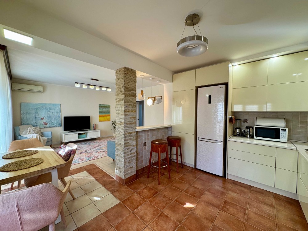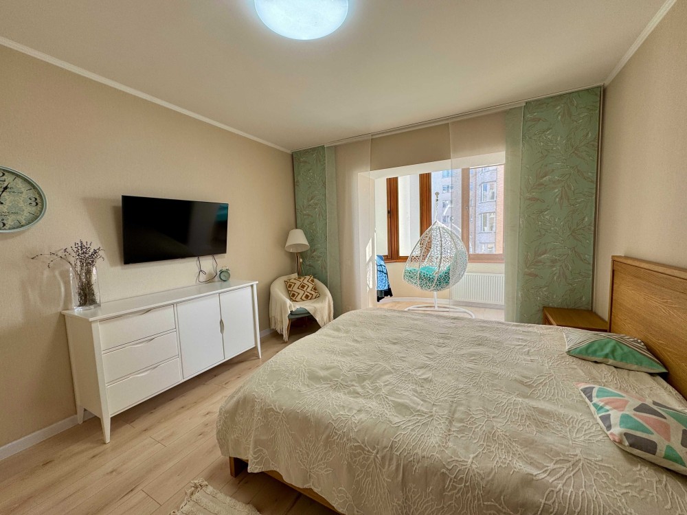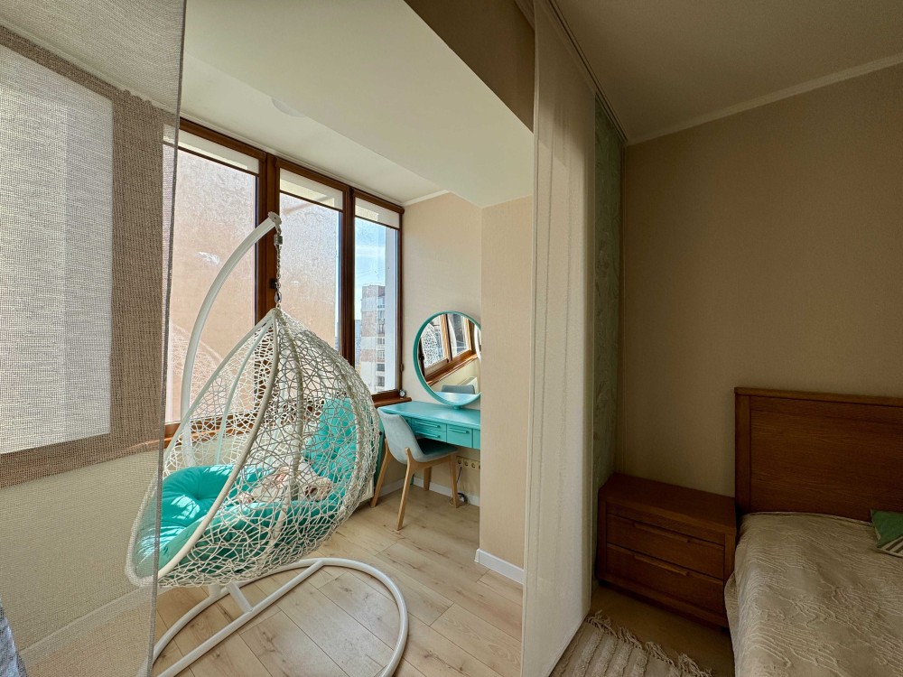 Чудове планування: простора кухня-студія, площею 33 кв м, дві лоджії відкрита та засклена, дві окремі кімнати. Вбудований фільтр для води, дві витяжки Franke, вся сучасна техніка та меблі залишаються новому власнику. В квартирі зроблено дизайнерський ремонт із використанням якісних матеріалів.