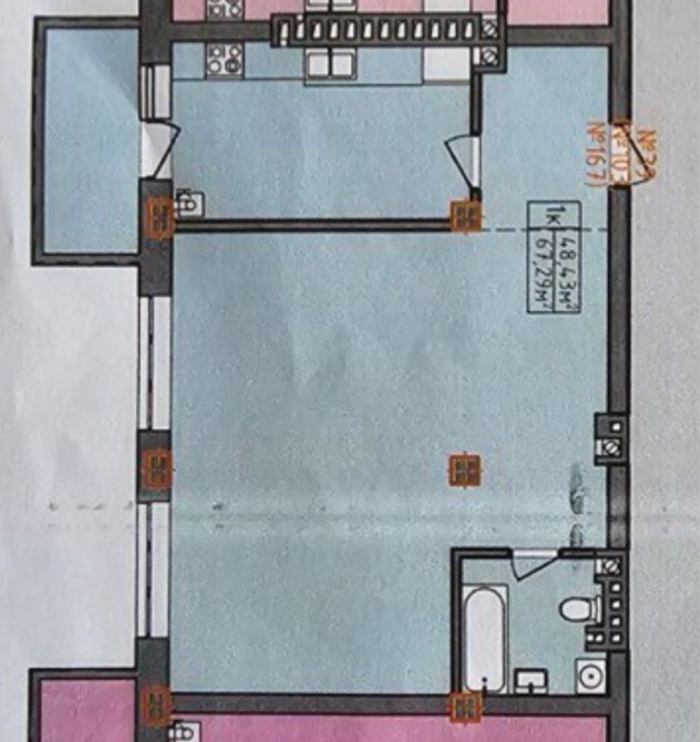 Планировка: возможно сделать кухню-студию и спальню, либо две отдельных спальни и кухню