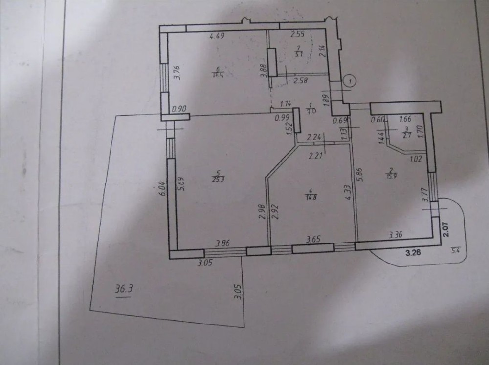 Характеристика: загальна площа – 100,7 кв.м, житлова площа – 56 кв.м (кімнати – 15,9/ 14,8/ 25,3), кухня – 17,4 кв.м , ванна – 5,1 кв.м, душова – 2,7 кв.м, тераса – 36,3 кв.м, балкон – 5,4 кв.м.