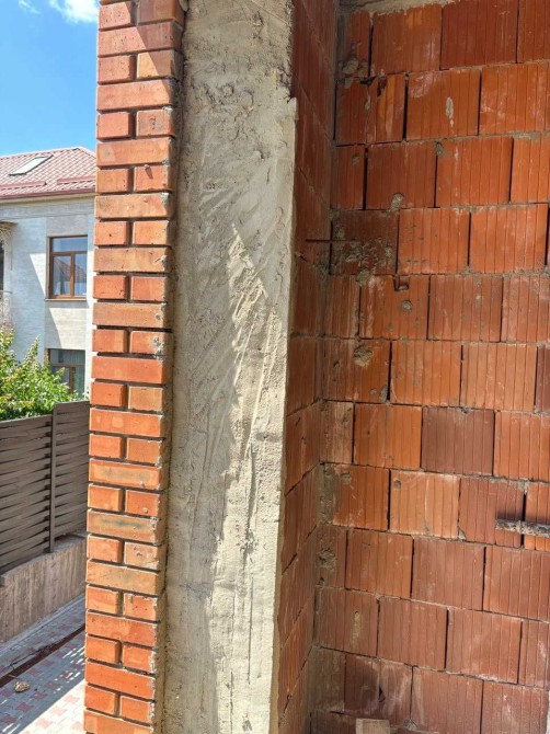 Збудован з червоної цегли з утепленням мінеральною ватою, та фанеровано цеголю