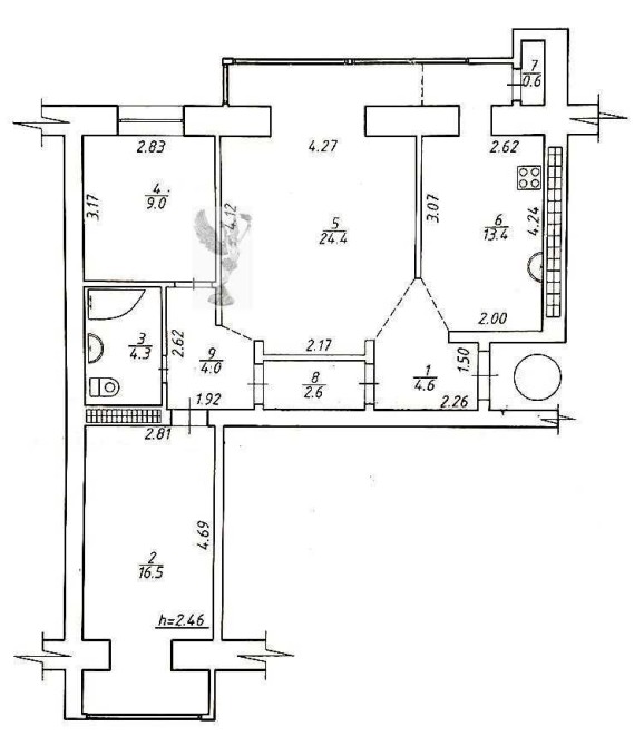 • Площа кухні 13.4 м2