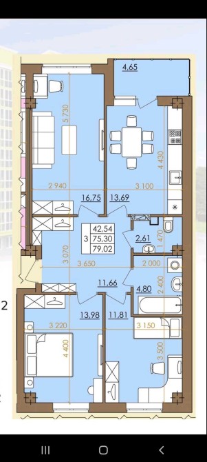 • Трикімнатна