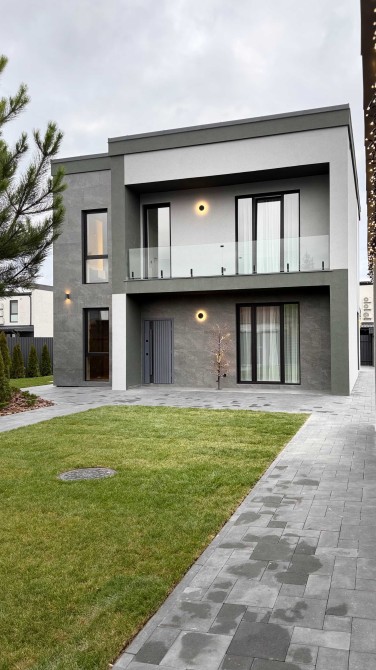 Двоповерховий будинок 180 м2 з дизайнерським ремонтом з використанням високояккісних та екологічних матеріалів. Має прилеглу відкриту терасу ,площею 37м2 , яку можна засклити ,при бажанні , та збільшити площу будинку . Гараж на два автомомілі з додатковим технічним приміщенням .