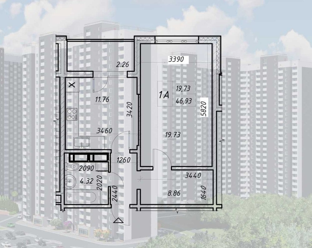 • Загальна площа 47 м2
