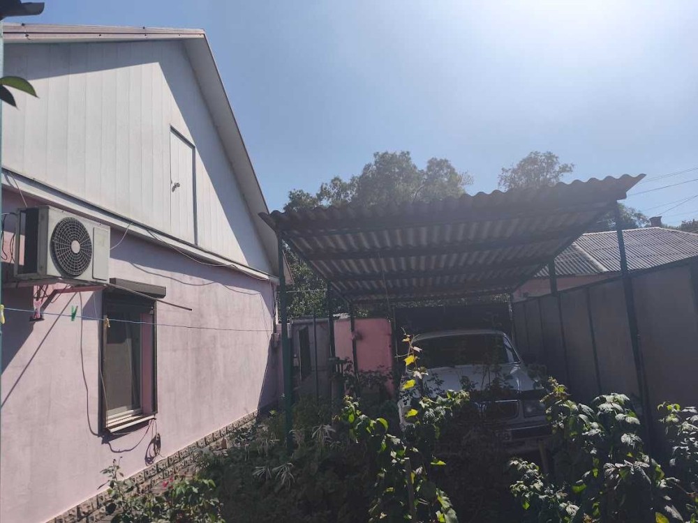 Во дворе есть заезд для машины с навесом, летняя кухня с газом и хоз/блок.
