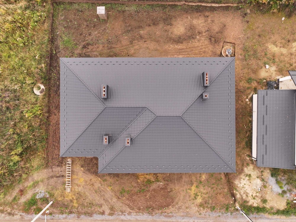 Простора кухня-вітальня (висота стелі 4 метри) з виходом на криту терасу 16м2, три окремі кімнати (включаючи майстер-спальню з власним санвузлом та гардеробом), гараж для 2 авто, підвал, котельня, загальна гардеробна, два санвузли, мансардний поверх вільного планування