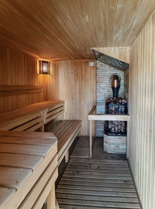 Другий будинок складається з двох поверхів, наперщому поверхсі: плавальний басейн площею 21 м та глибиною 1,7 метрів, лазня, господарська кімната. Другий поверх: кухня - вітальня, дві спальні, санвузол.