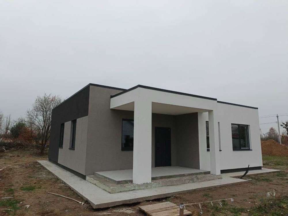Газоблок -400, перестінки в будинку виконані з якісної цегли, вікна та фурнітура REHAU, перекриття в будинку - дах моноліт та покритий мембраною, Декоративна, зовнішня штукатурка CERESIT. Зовнішнє утеплення будинку пінопласт 10 см.