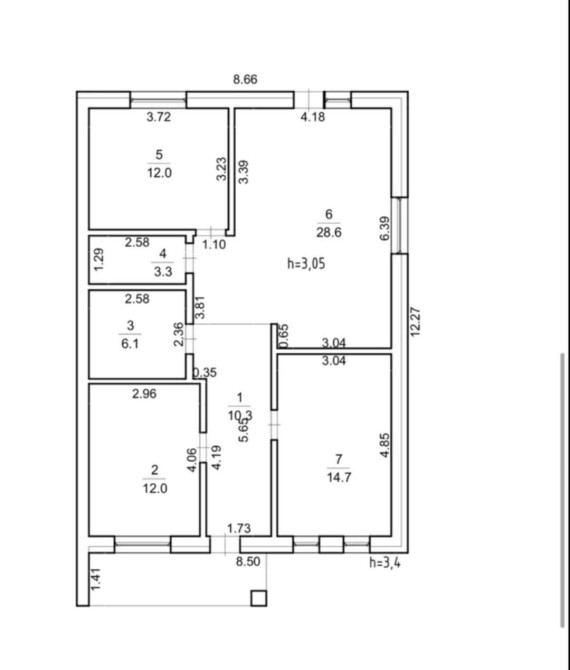 Три спальні, санвузол, паливна/технічне приміщення