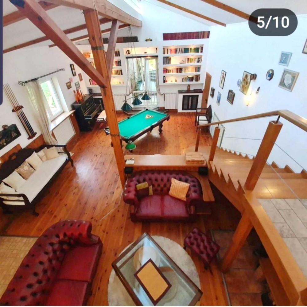 Продам будинок. Обухівський район, Козин, Дамба 10-й км, вул. Старокиївька. СТ «Розділлля». Будинок 338м2 з оздобленням, меблями та побутовою технікою. Три спальні, три санвузли, сауна, плюс дві кімнати вільного призначення, басейн з протитечією, гараж. Велика кімната з каміном та подвійним світлом, більярд. Опалення: два котли, електричний та газовий, генератор, фільтри води. Є велика крита тераса та зона BBQ. Дуже мальовнича ділянка 22 сотки з багаторічними ялинками, фруктовими деревами та декоративними рослинами. На території є гостьовий або ж господарчий будинок 75 м2. Територія товариства охороняється, є вихід на річку Козинку. Ціна 450000$