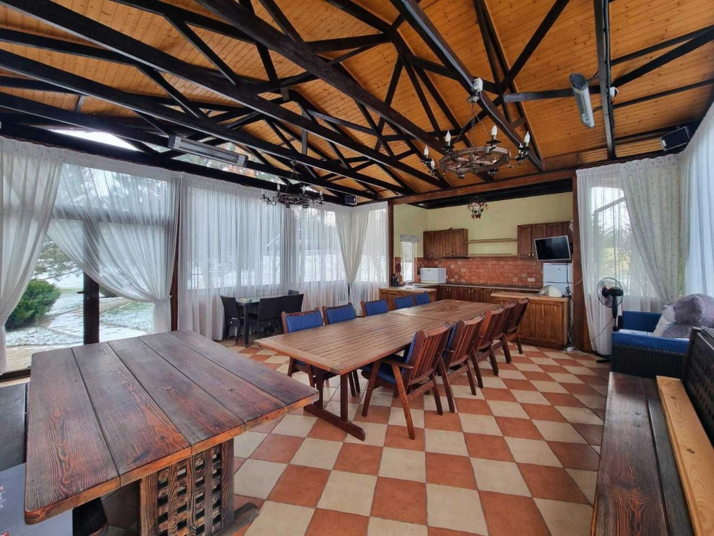 На ділянці є 2х поверховий гостьовий будинок, S = 150 кв.м., гараж на 3 машини та альтанка площею 53 кв.м. з розсувними вікнами для комфортного відпочинку будь-якої пори року.