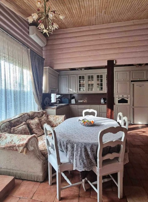 Пропоную Вашій увазі комфортний сучасний будинок частково зі зрубу, частково кам’яний. Розташований у 15 км. від Харкова по Київській трасі, зі своїм виходом до води. Будинок у двох рівнях, S=465 кв.м., на огороженій ділянці, 40 соток з ландшафтним озелененням і доступом дот відсипного пляжу. Тут все забезпечує Вам комфорт та безпеку. У будинку 6 житлових кімнат. Стильний інтер'єр продуманий до дрібниць. Прованс, у якому відчувається дух старої Франції, вдало поєднується з американською класикою, яка приваблює своєю легкістю. Верхнє освітлення та просторі вікна добре освітлюють затишні приміщення.